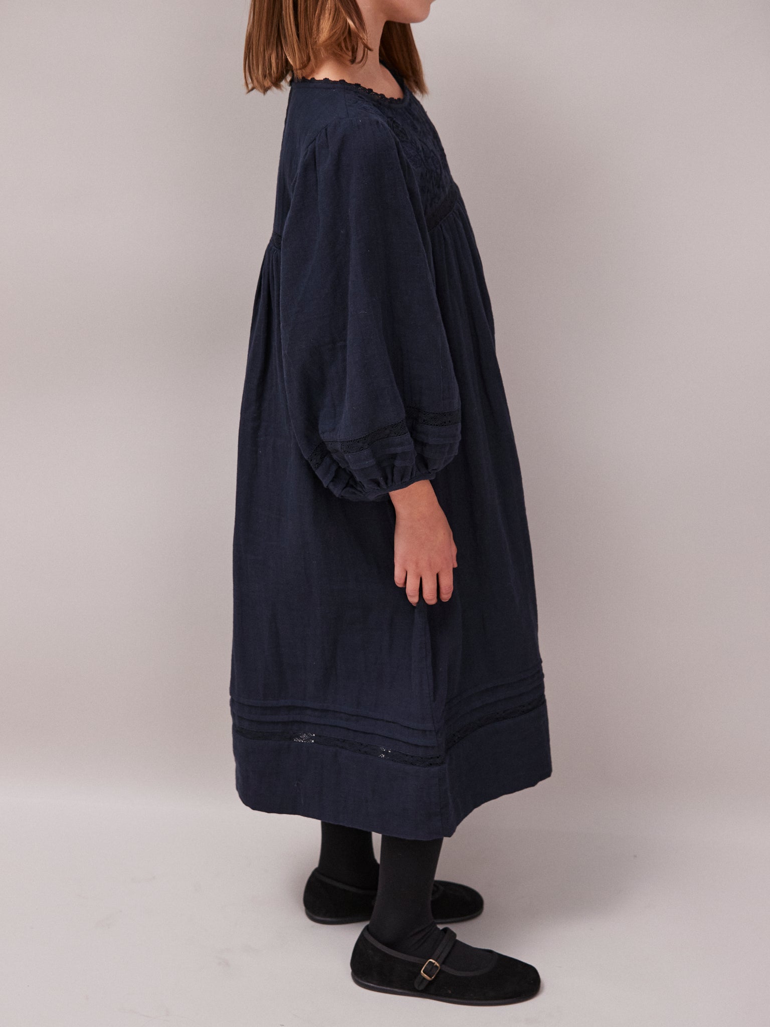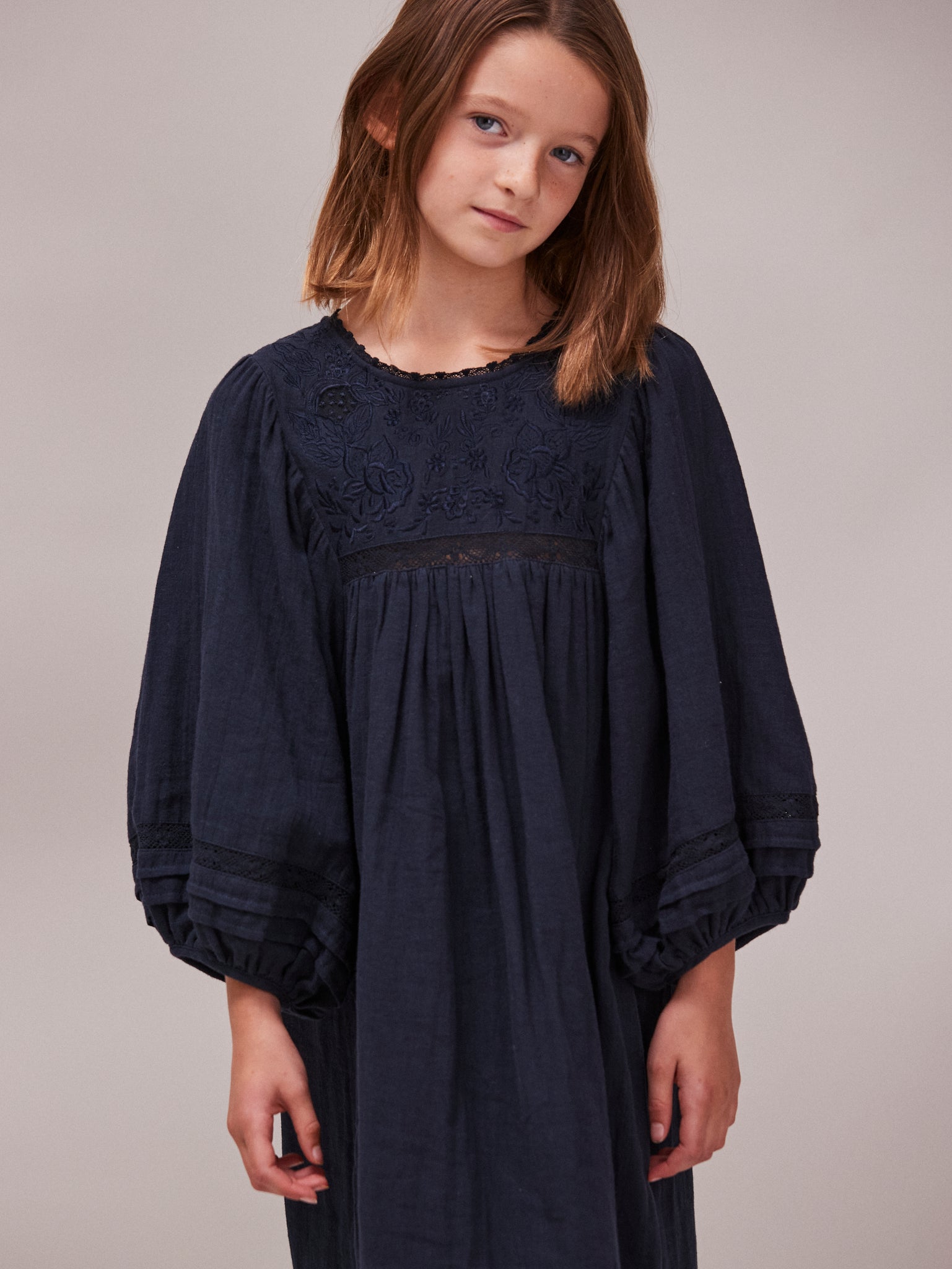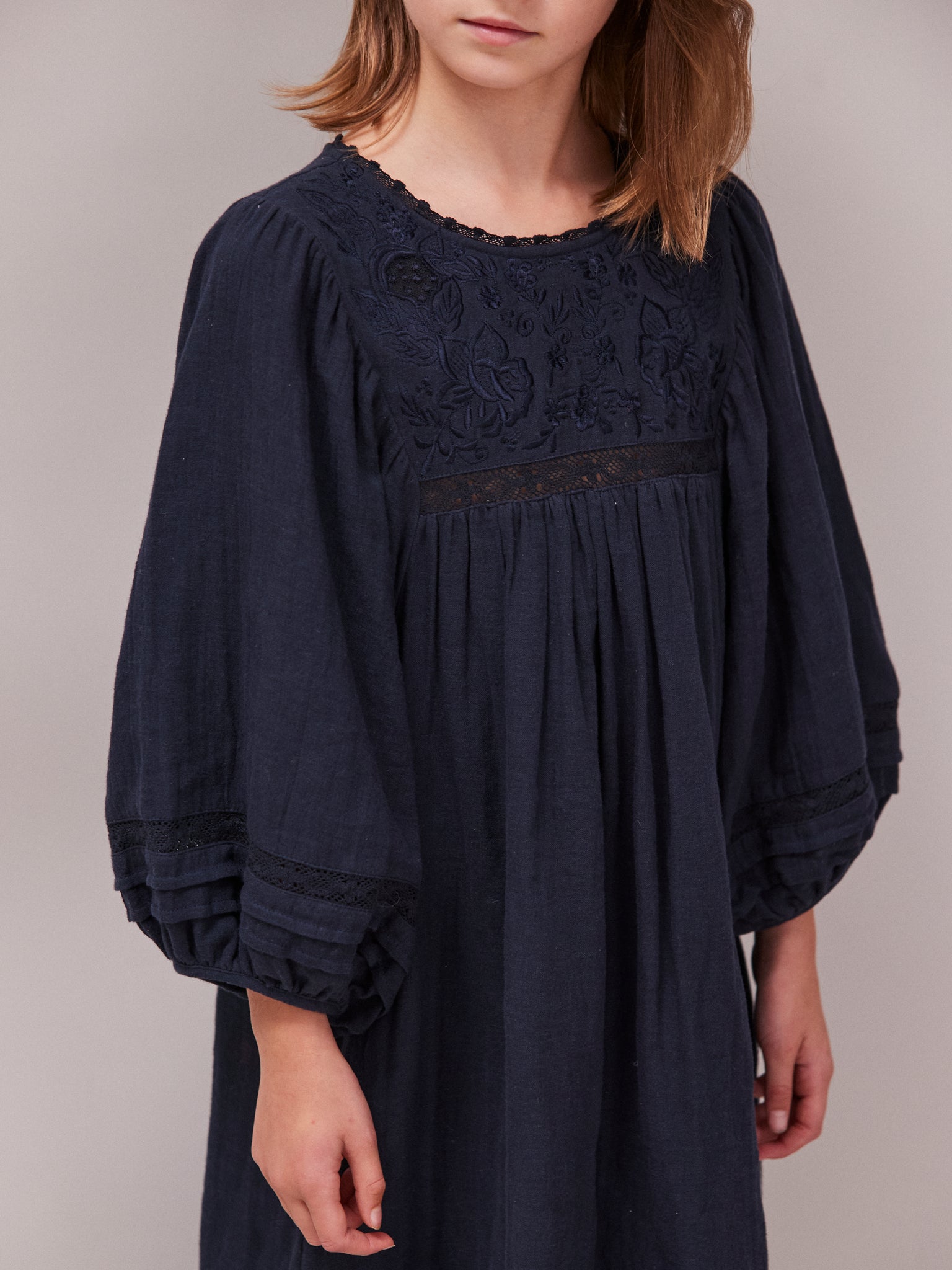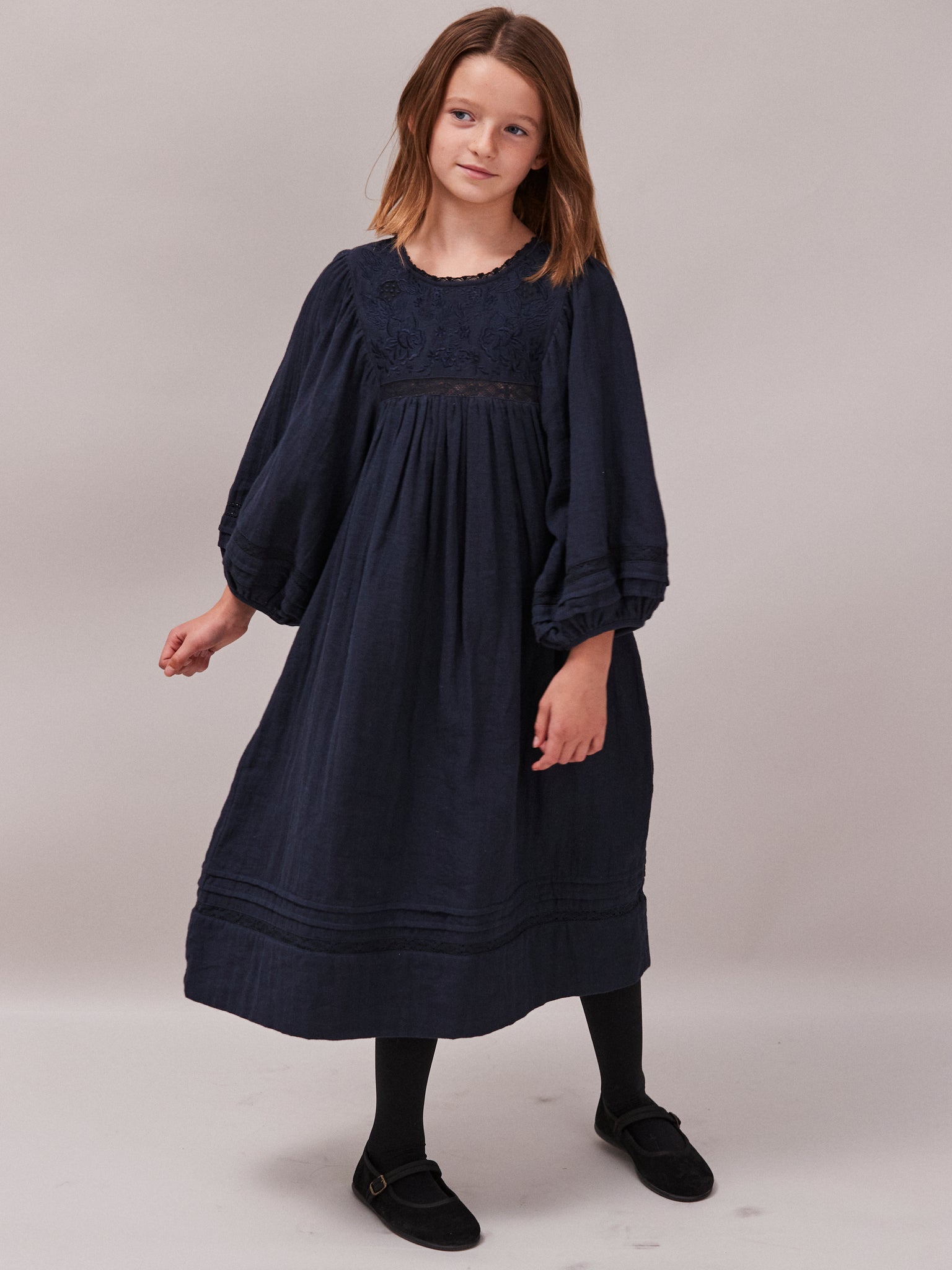 Lotus is a beautiful dress designed with the festive season in mind. Cut in a warmer double cotton gauze base in our new INK blue shade.