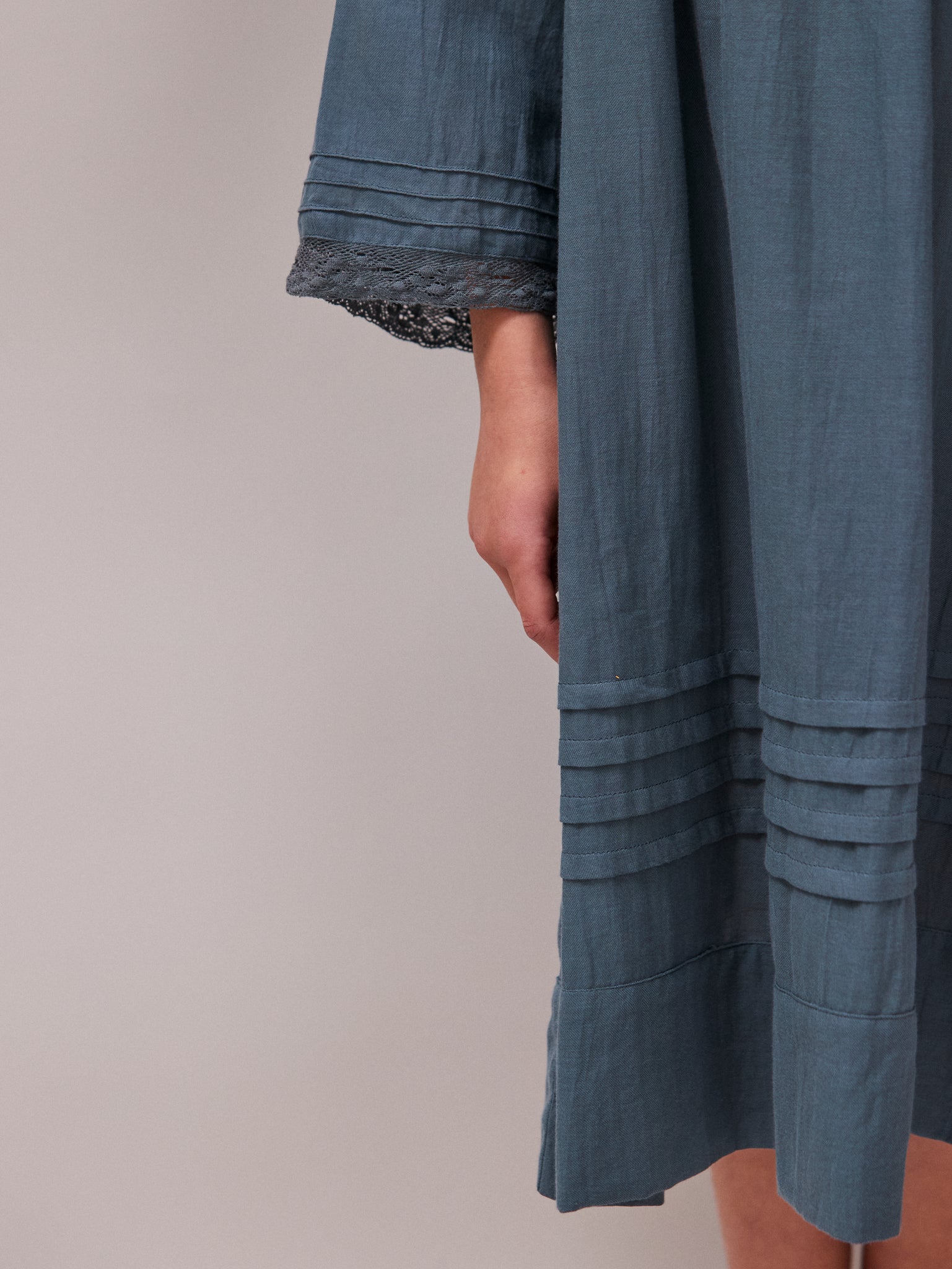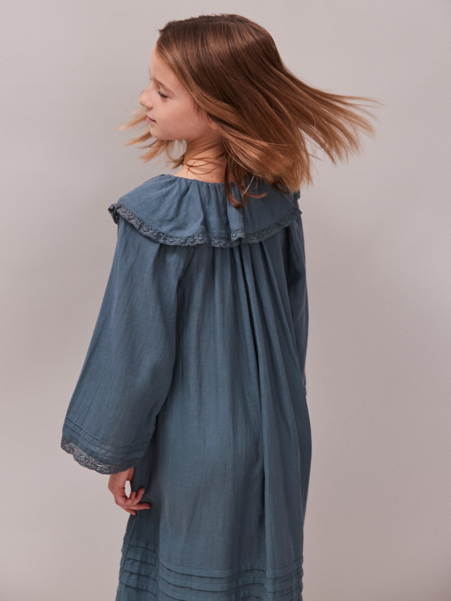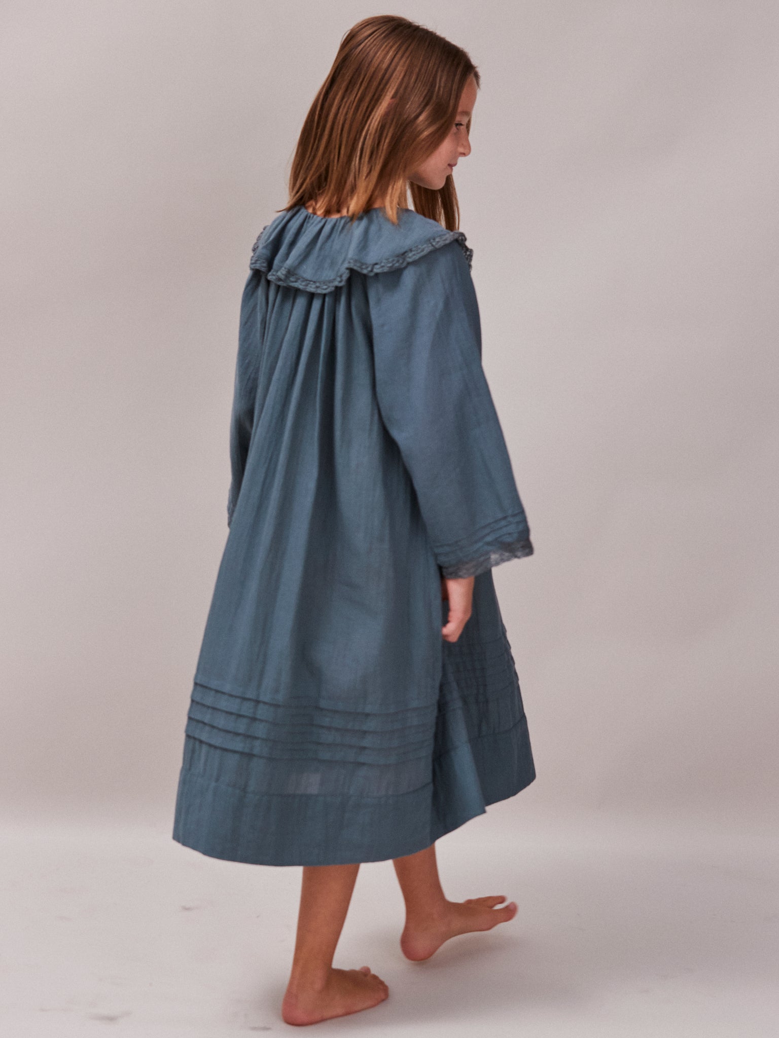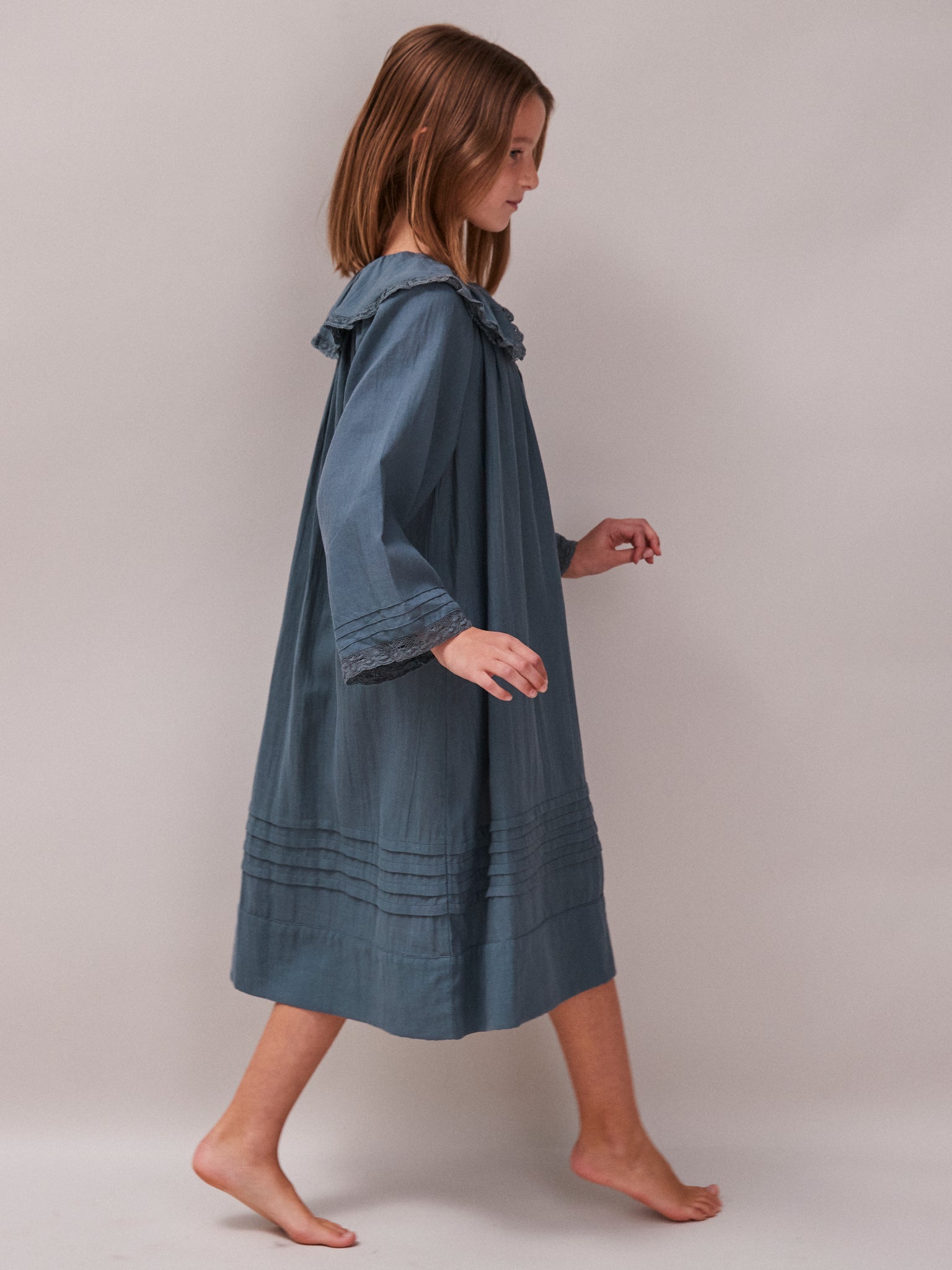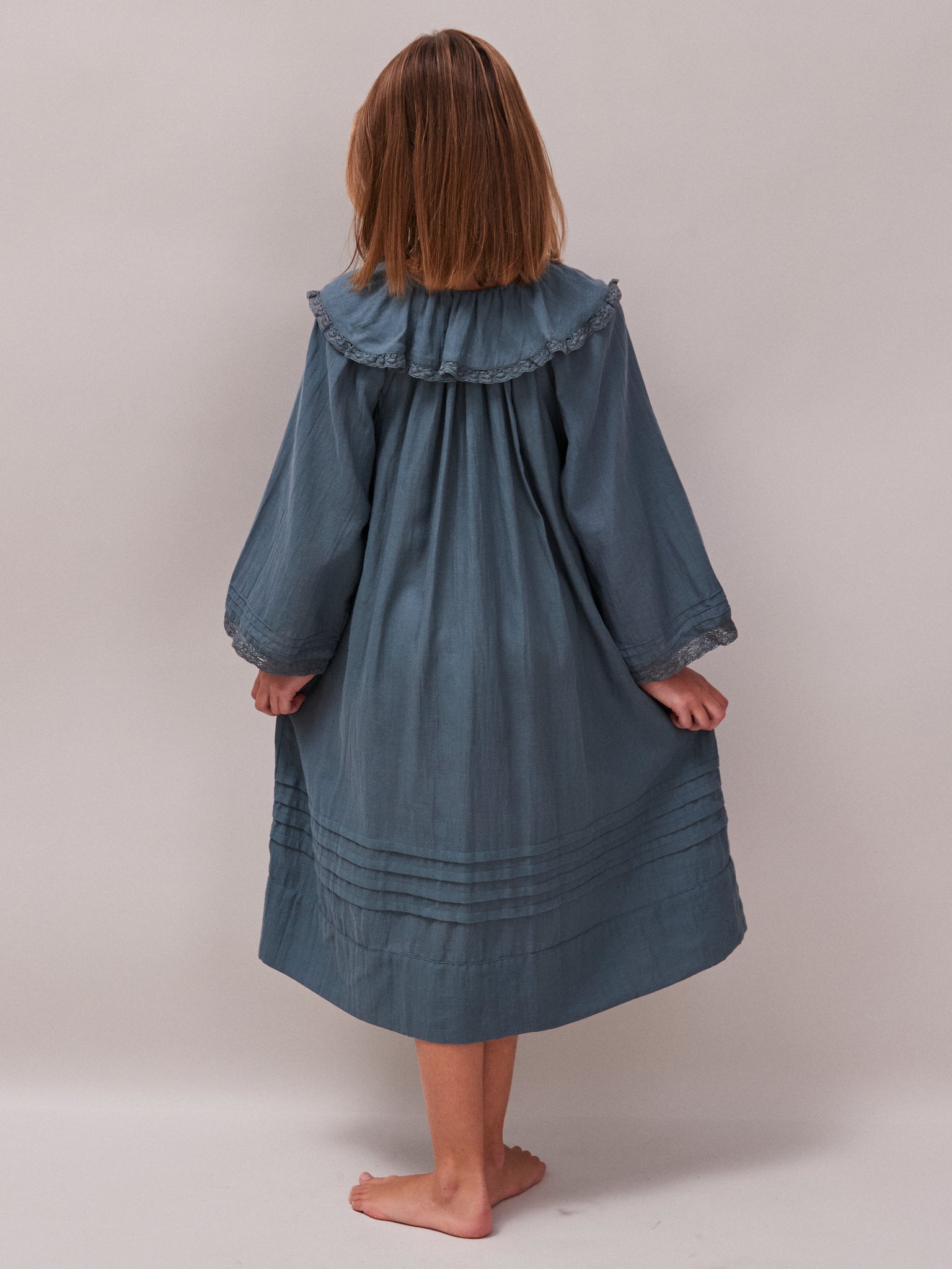 Hebe is a vintage inspired nightdress with a lace trim Peter Pan collar. Cotton Twill | Kingfisher blue