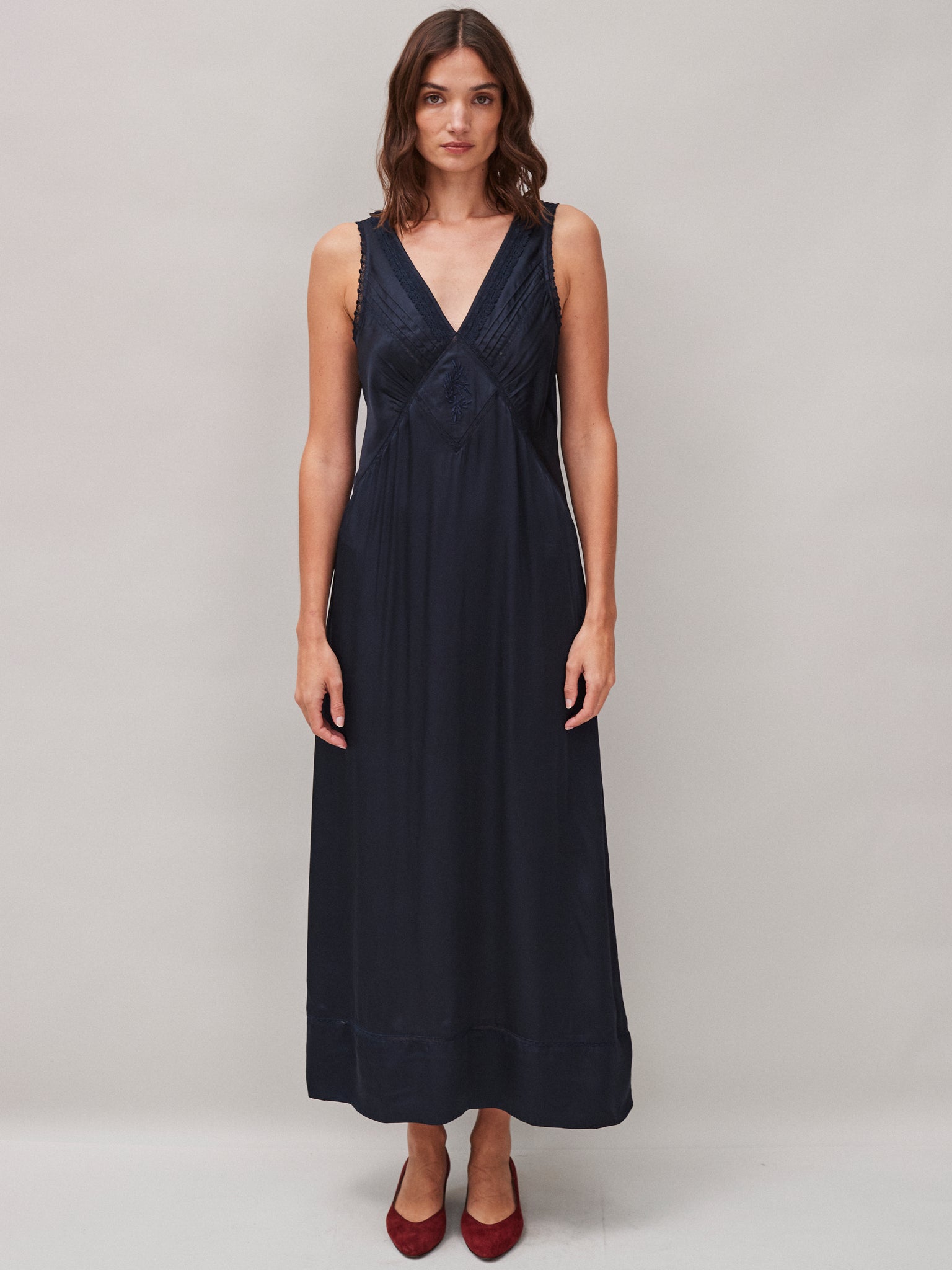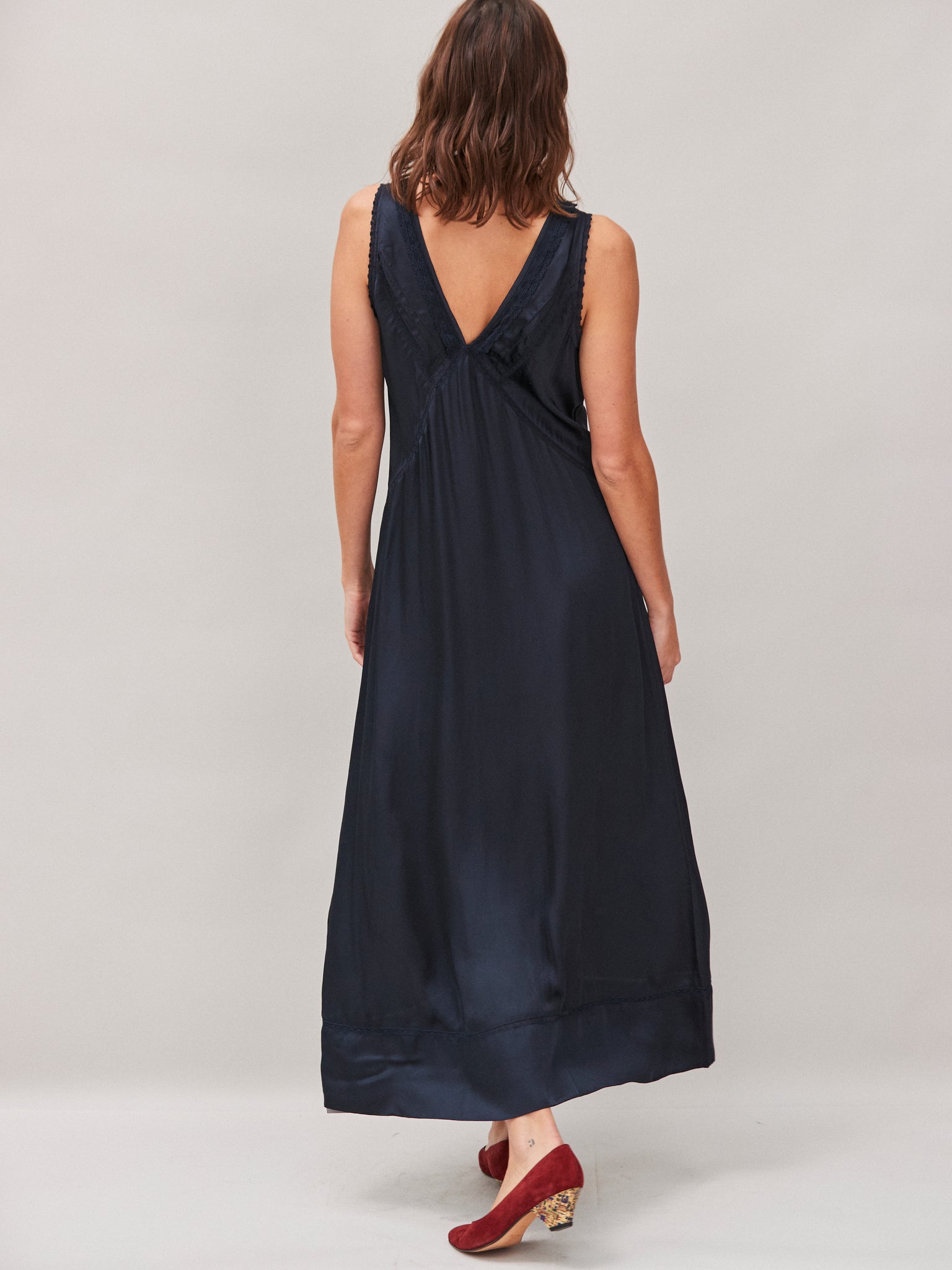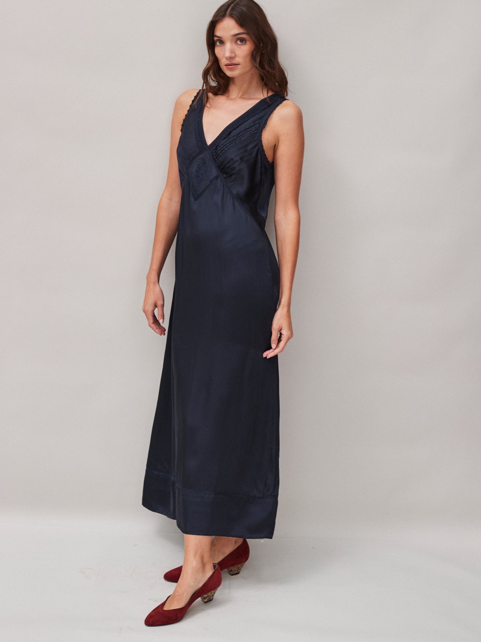 Primrose vintage inspired slip dress, INK blue | Modal satin