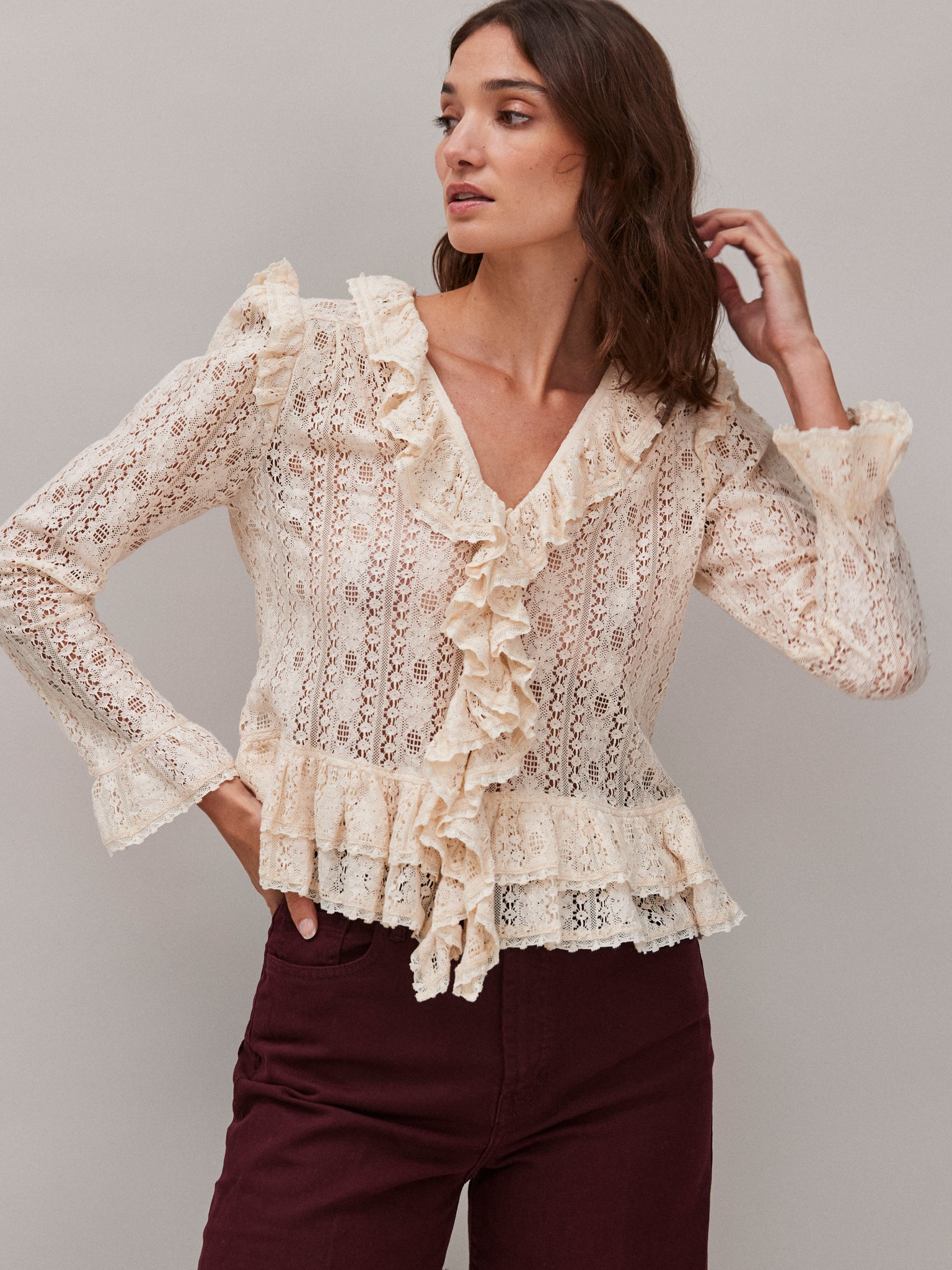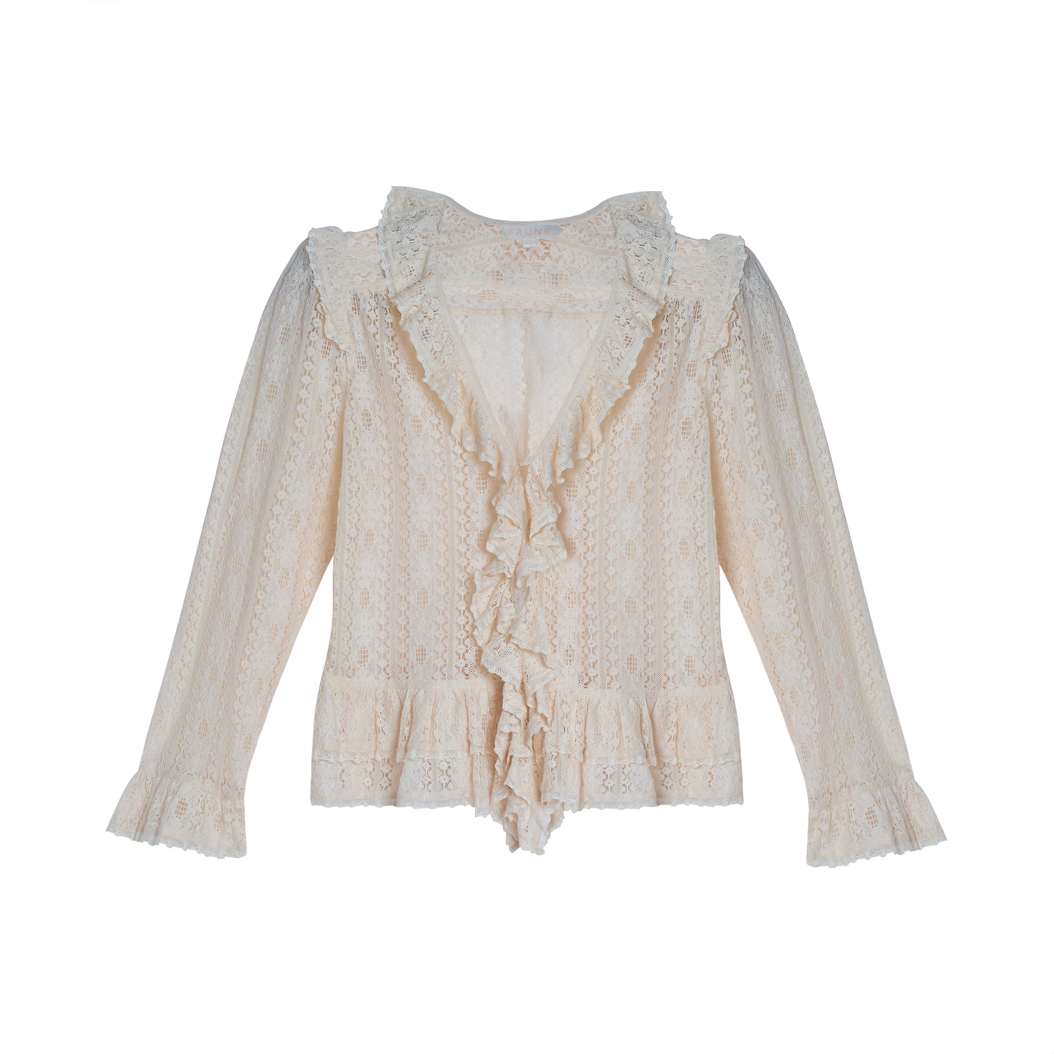 Romy is a vintage inspired romantic lace blouse in oyster| Cotton Lace Made in a delicate lace featuring soft romantic ruffles.