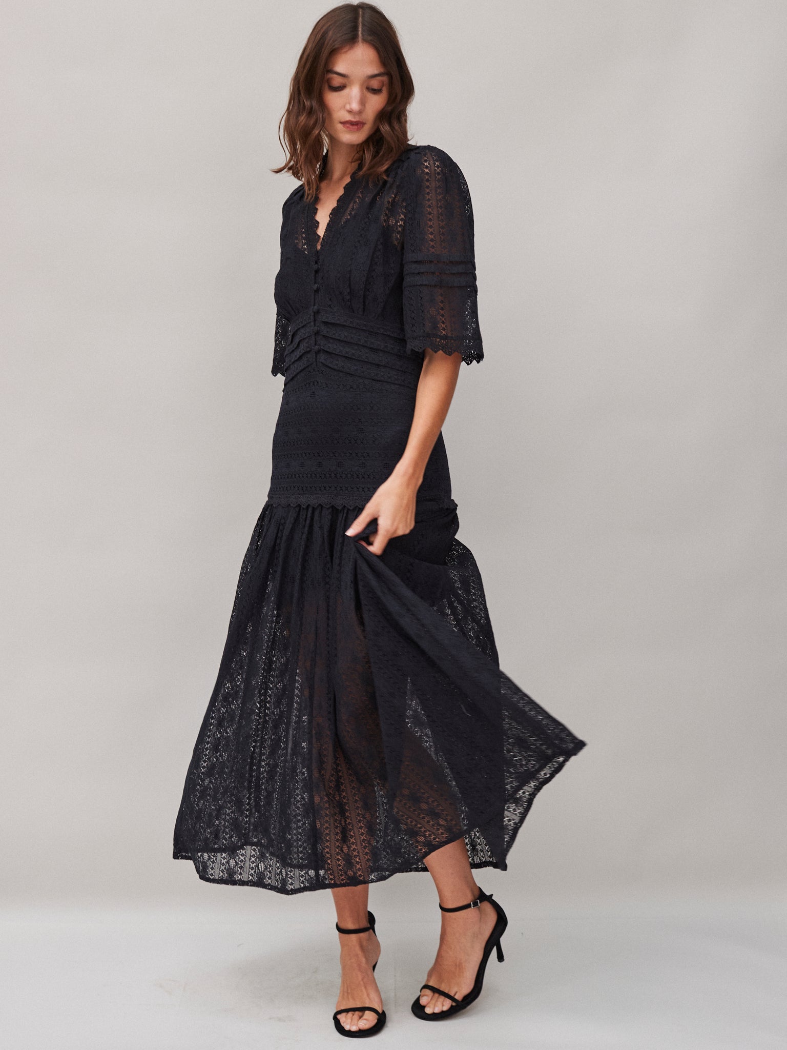 Starlette vintage inspired maxi dress Black | Cotton Lace