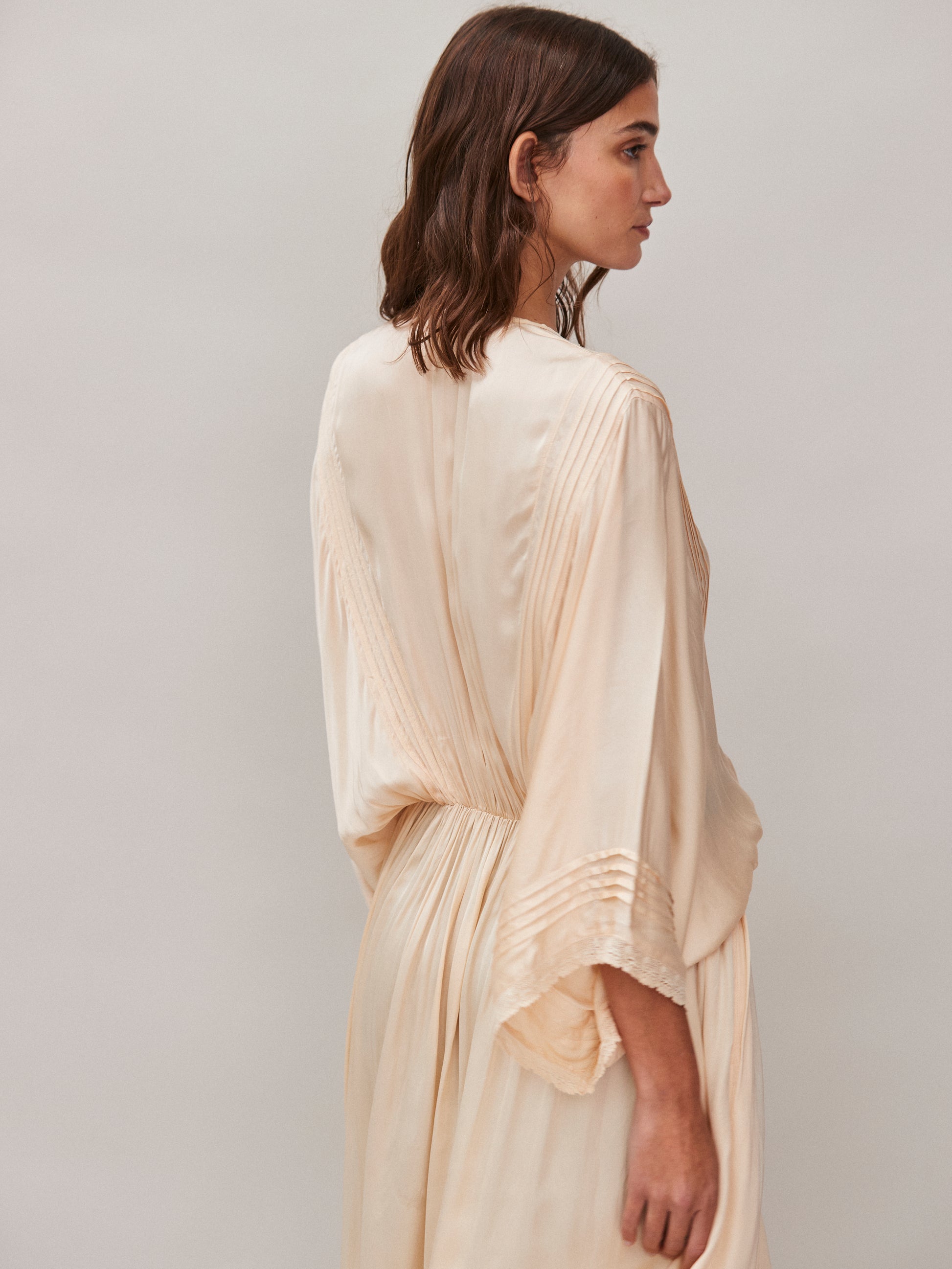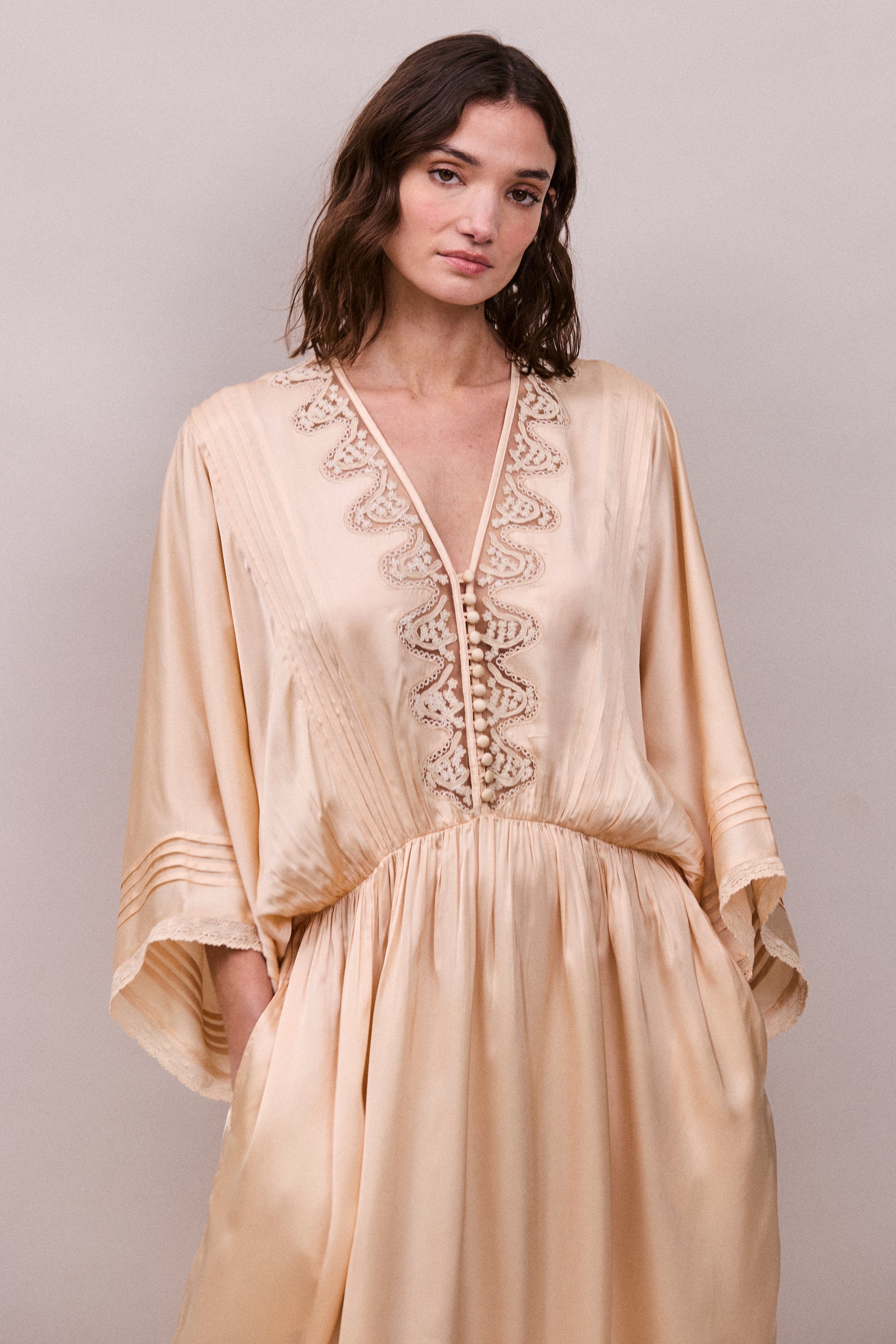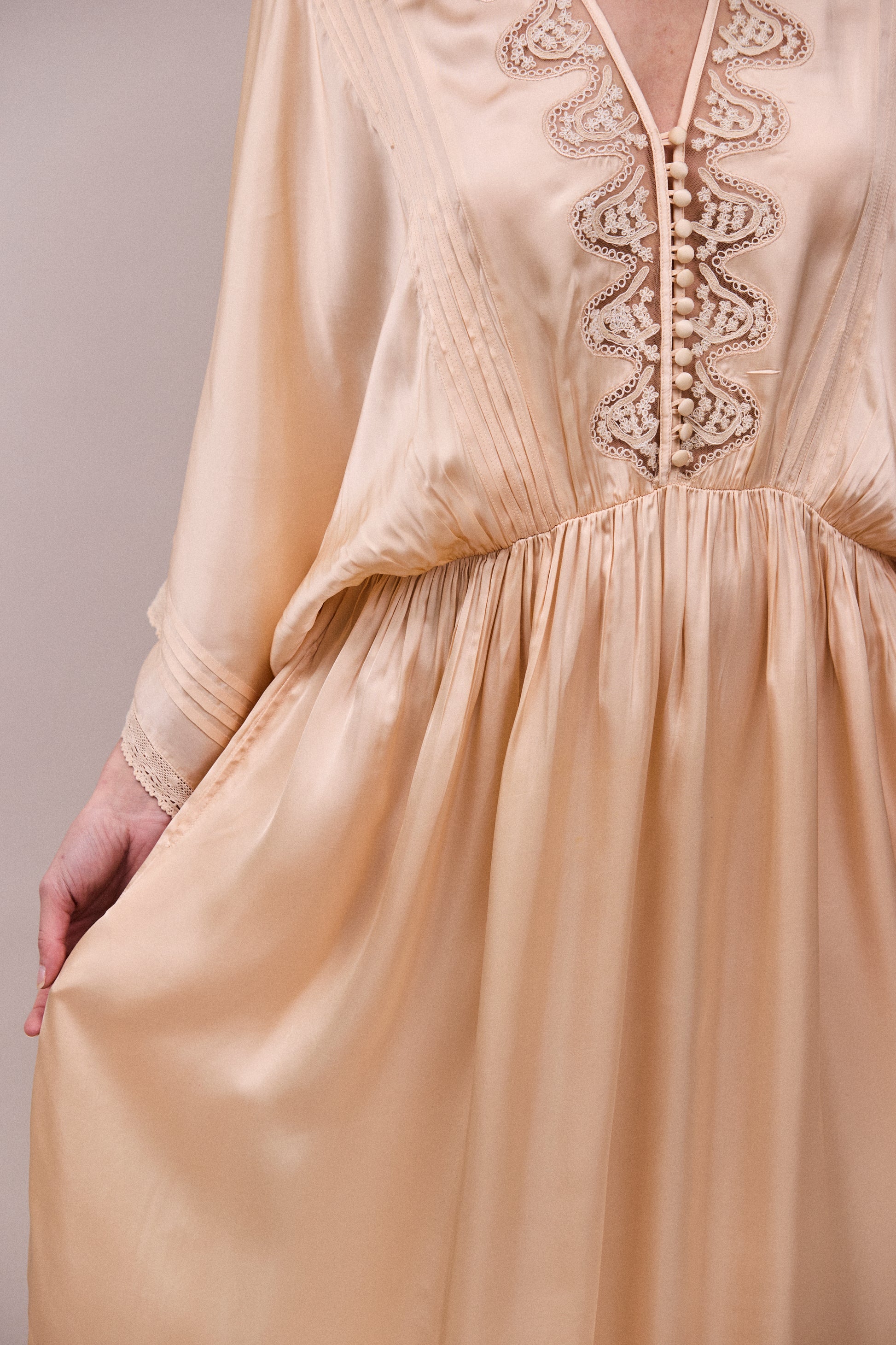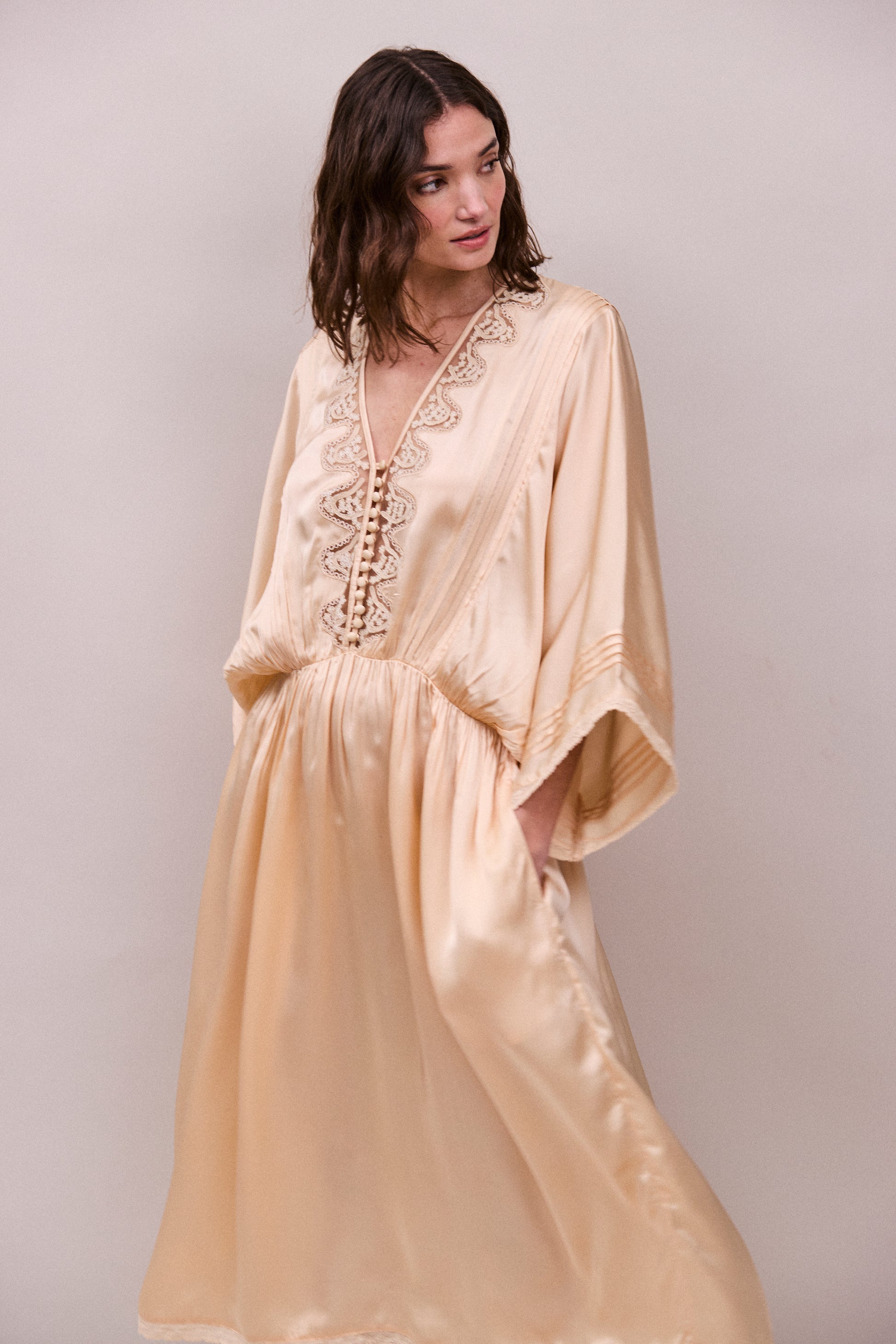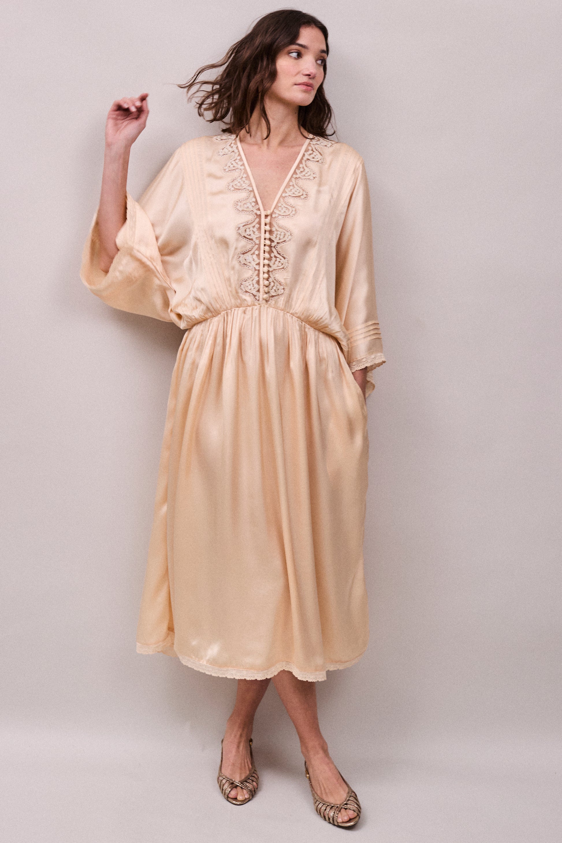 Honeysuckle is a vintage inspired midi dress in Natural blush | modal satin