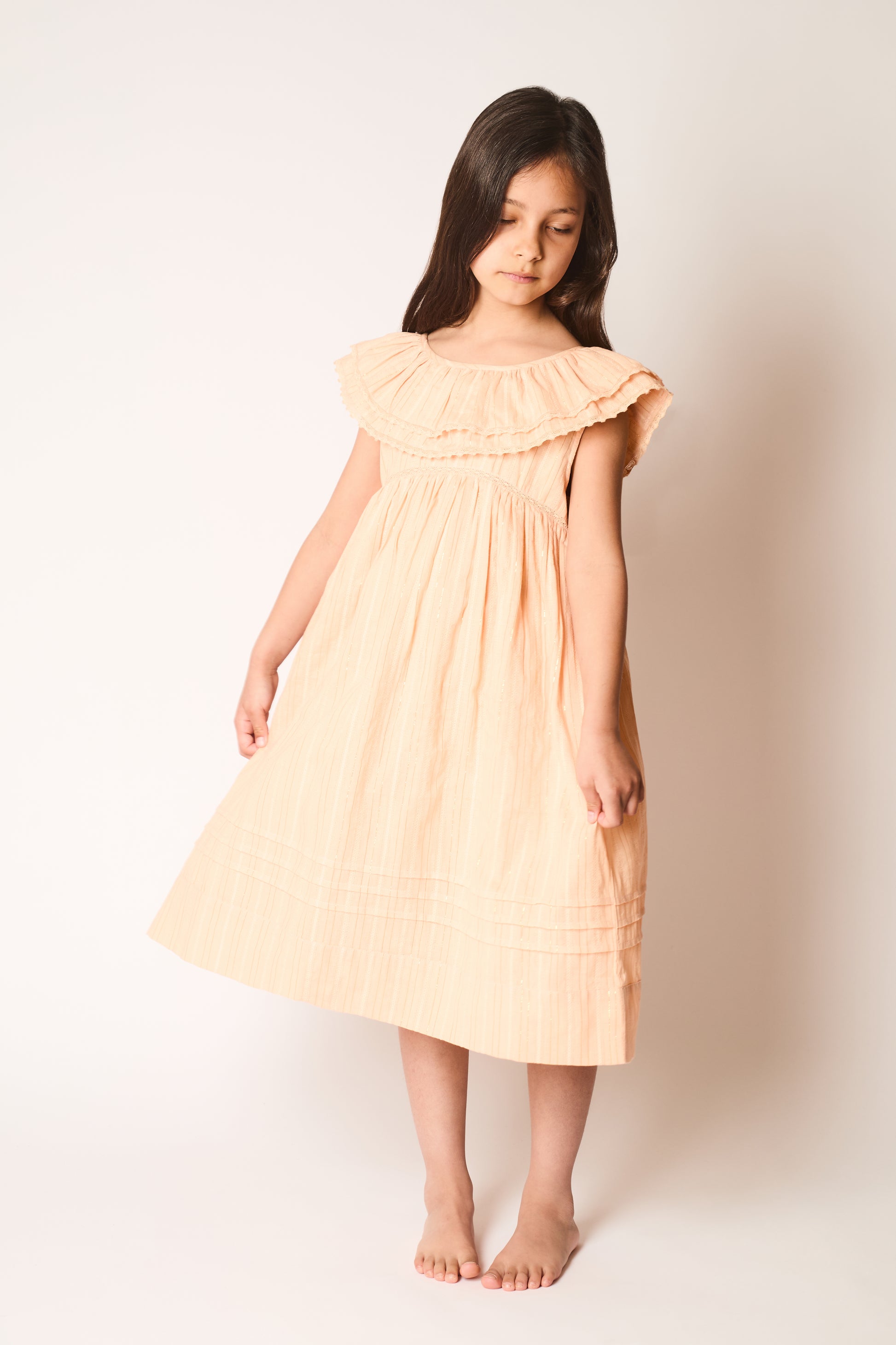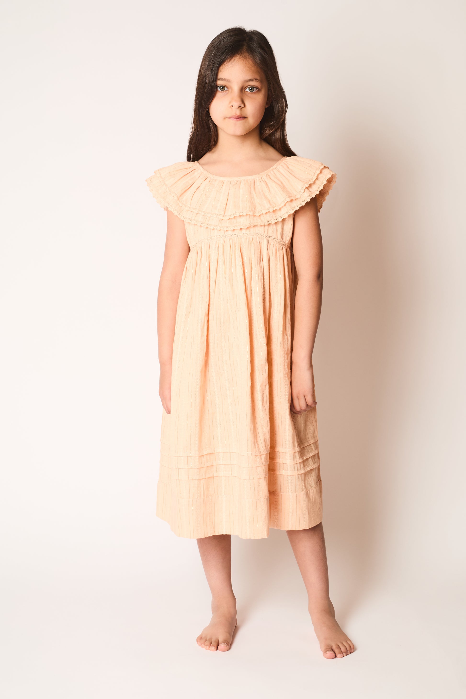 Model Evelyn is age 8, height 129cm(4'2.5") and wears a size 8-10 years